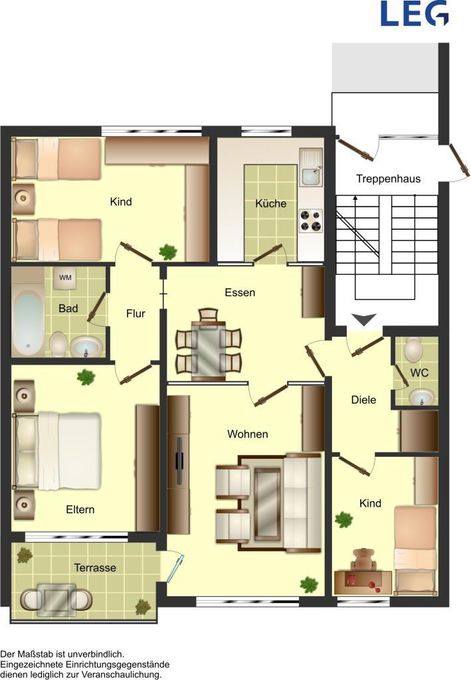 Sie wünschen einen Besichtigungstermin? Wir freuen uns auf Sie! Wir von der LEG sind Ihre kompetenten Vermieter mit vielen Jahrzehnten Erfahrung in der Wohnungswirtschaft. Gerne beraten wir Sie bei der Kaution als Ratenzahlung. Zudem können Sie über plusForta eine Kautionsbürgschaft hinterlegen lassen. Sprechen Sie uns einfach an! Dieses Angebot ist unverbindlich. Irrtum vorbehalten. Der Grundriss ist nicht maßstabsgetreu.