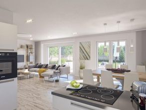 Dieser Bungalow (Clou 111) ist ein architektonischer Klassiker und begeistert durch klare, puristische Züge. Optisch aufgewertet wird er durch deinen ansprechenden Rechteckerker mit großer Verglasung und direktem Zugang in den Garten. 45 m² Wohnbereich, offen und großzügig gehalten, sind mehr als großzügig. Auch ein Kinder- oder Gästezimmer haben ihren Platz im Raumkonzept gefunden. Wie auch immer sich die Familienkonstellation entwickelt - Sie bleiben flexibel.