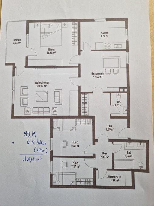 Helle 4,5 Zimmer ETW mit schönem Blick ins Grüne, seht gut geschnitten, Eltern SZ + 2 Kinderzimmer,