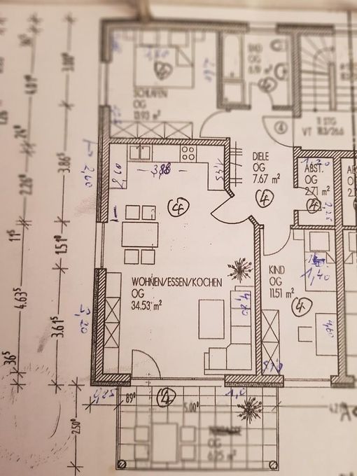 Das Fünffamilienhaus wurde 2013 als KFW 55-Haus errichtet mit einer Holzpelletsheizung und einer Wohnraumbelüftungsanlage. Im Flur, Bad und im Bereich der Küchenzeile ist ein Fliesenboden verlegt. Die Schlafräume sowie der Wohn-Essbereich sind mit einem Parkettboden ausgestattet. Die Küche kann bei Bedarf abgelöst werden. Außerdem ist vom Flur aus ein kleiner Abstellraum zugänglich.