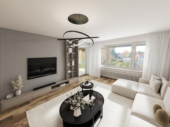 Die Wohnung befindet sich aktuell in Renovierung. Das Bild ist digital möbliert, zeigt aber die echte Wohnung.