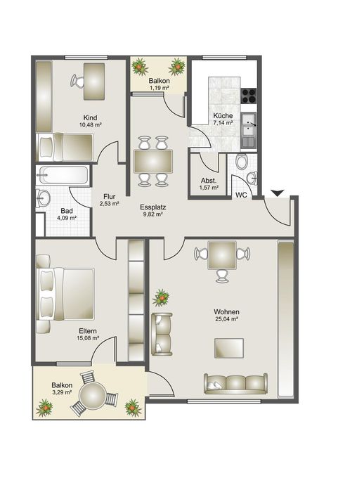 Die Wohnung liegt in einem gewachsenen, ruhigen Wohngebiet in einer Mehrfamilienhausanlage von Möglingen. Möglingen ist eine Gemeinde im Baden-Württembergischen Landkreis Ludwigsburg. Sie gehört zur Region Stuttgart (bis 1992 Region Mittlerer Neckar) und zur europäischen Metropolregion Stuttgart. Zur etwas mehr als 11.000 Einwohner zählenden Gemeinde Möglingen gehören keine weiteren Orte. In unmittelbarer Nähe liegt das wirtschaftlich bedeutende Ludwigsburger Industriegebiet Tammerfeld, u.a. mit Breuningerland und IKEA, bzw. die Kreisstadt Ludwigsburg. Die Bundesautobahn A81 ist über die Anschlussstelle Ludwigsburg-Süd in kurzer Zeit erreichbar. Alle Einrichtungen des täglichen Bedarfs befinden sich vor Ort, ebenso diverse Einrichtungen zur Freizeitgestaltung.