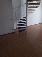 Eine elegante Wendeltreppe führt in das obere Stockwerk, wo sich zwei gemütliche Schlafräume unter dem Dach befinden- ideal als Rückzugsort für die ganze Familie oder als Arbeitszimmer.